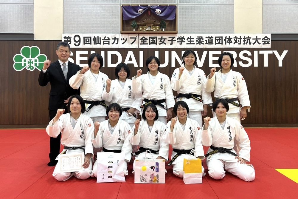 2月17・18日(火・水)の2日間、第9回仙台カップ全国女子学生柔道団体対抗大会(5人制団体)が宮城県の仙台大学で行われ、本学女子柔道部が出場。予選リーグ(D)を3戦全勝で突破し決勝トーナメントに進出。その1回戦で昨年、本学女子柔道部が2位と健闘した全日本学生柔道優勝大会で5位の帝京大学Bを3-1で退け準決勝へ駒を進めます。準決勝では優勝した仙台大学Aに1-1の内容負けで敗れ惜しくも決勝進出を逃します。しかし、3位決定戦で淑徳大学を2-1で破り3位と、2026年シーズンの初戦でまずまずのスタートを切りました。応援ありがとうございました。