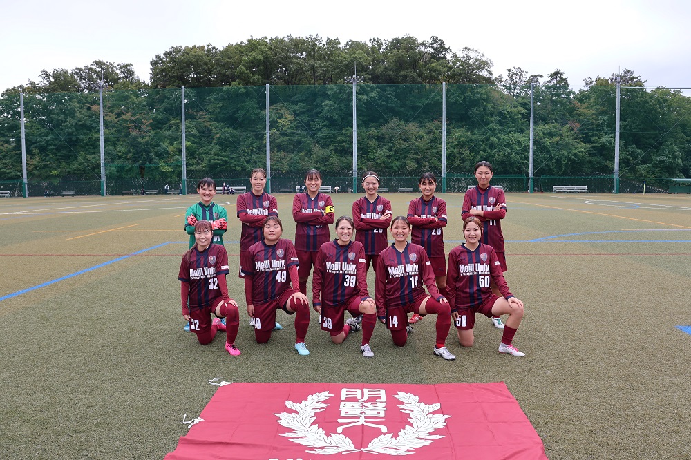 2025年度関西女子サッカーリーグの1・2部入れ替え戦が21日(日)、兵庫県の三木防災第二陸上競技場で開かれ、2部2位の本学女子サッカー部は1部7位のSASAYURI FC SHIGAと1部昇格をかけて対戦します。23日(火)に開幕する第34回全日本大学女子サッカー選手権大会(インカレ)を控えており、主にサブメンバーで挑むこととなりますが、勝って勢いをつけたいところです。応援よろしくお願いします。
